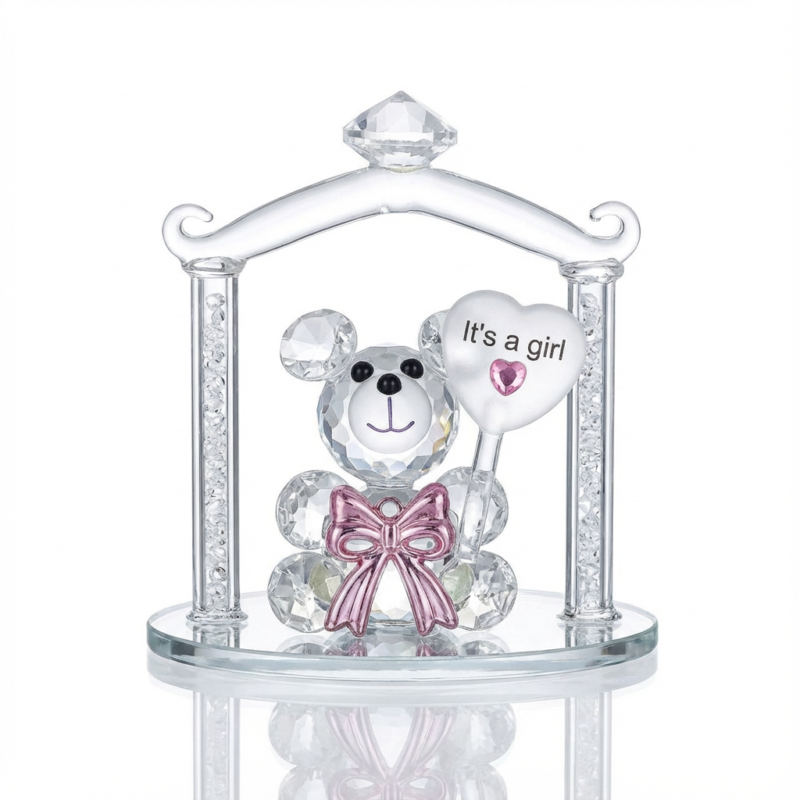 Figurine Baby Shower en cristal – Ourson “It’s a girl”